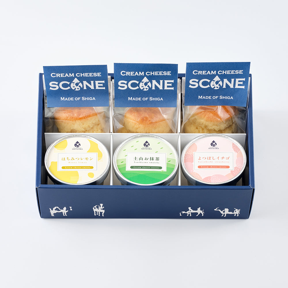 クリームチーズのスコーン3個 レアチーズ3種(プレーン、土山お抹茶、よつぼしイチゴ)ギフトボックス入り